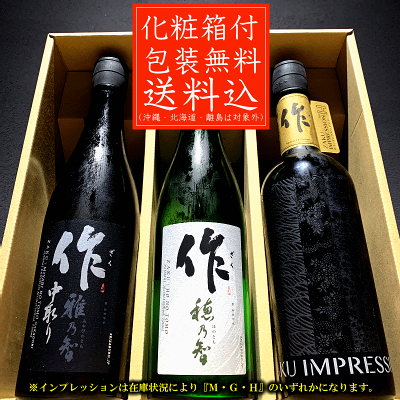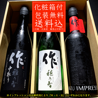 【化粧箱・送料込(一部除く)!】 近年、希少酒の仲間入りを果たした当店でも人気の「作」! その中でも特に希少とされるインプレッションシリーズと 作 シリーズを代表する2本を合わせて3本飲み比べセットで御案内致します。